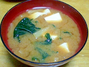 豆腐とわかめと大根菜のお味噌汁 今日のお味噌汁 キッチンわさび